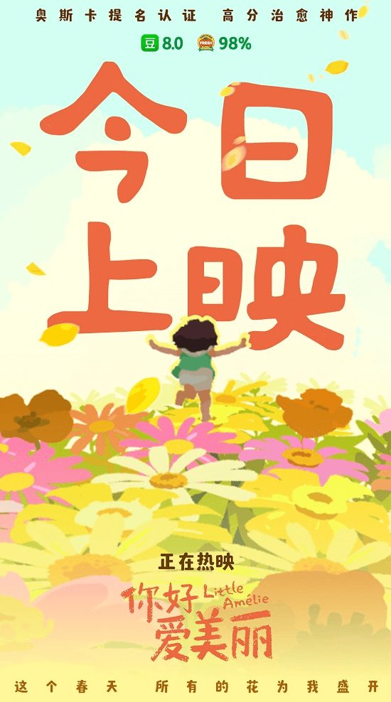 赢得第98届奥斯卡金像奖最好动画长片等40+国外大奖提名的电影《你好,爱绚丽》至当天厚爱登陆中国内地影院,同期发布“爱绚丽的第一个春天”正片片断、“拥抱世界”海报、导演独家致意视频以及和导演为中国内地不雅众独家手绘制。电影由导演迈利斯·瓦拉德、韩良畴共同捏导,改编自阿梅莉·诺冬的原著演义《管子的玄想》,发达了小女孩爱绚丽在童真视角下感知世界、履历成长的慈祥故事,在制作上也以独到休养的画风、温文休养的故事,赢得不少好评。这个春天,整个的花为我怒放,诚邀诸位整个共赴春日心灵之旅!