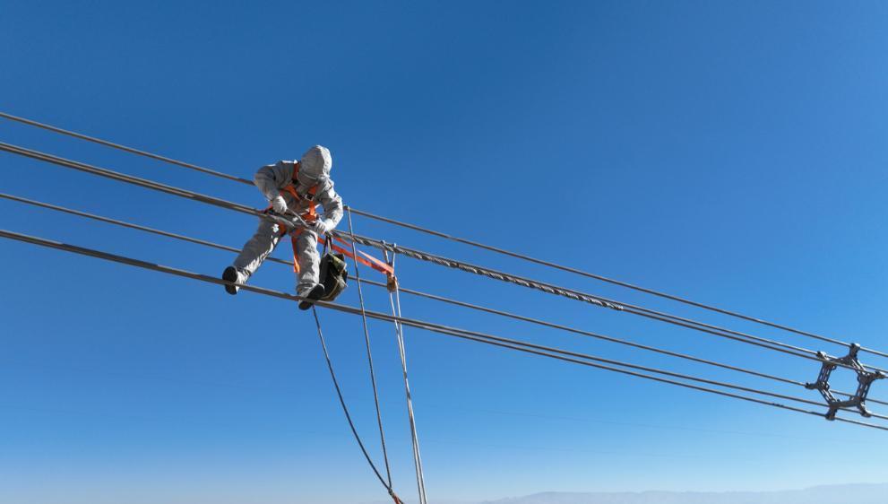 “冬季严冷天气对功课安全是最大的挑战。对此,咱们合理安排东谈主员和时分,确保功课安全,率先把高空功课时分安排在中午最温雅的时候;然后三天功课安排三个东谈主轮替上高空开展等电位功课,前两天诀别是翟玉龙和朱国珍,今天是张杨。”姚斌先容。