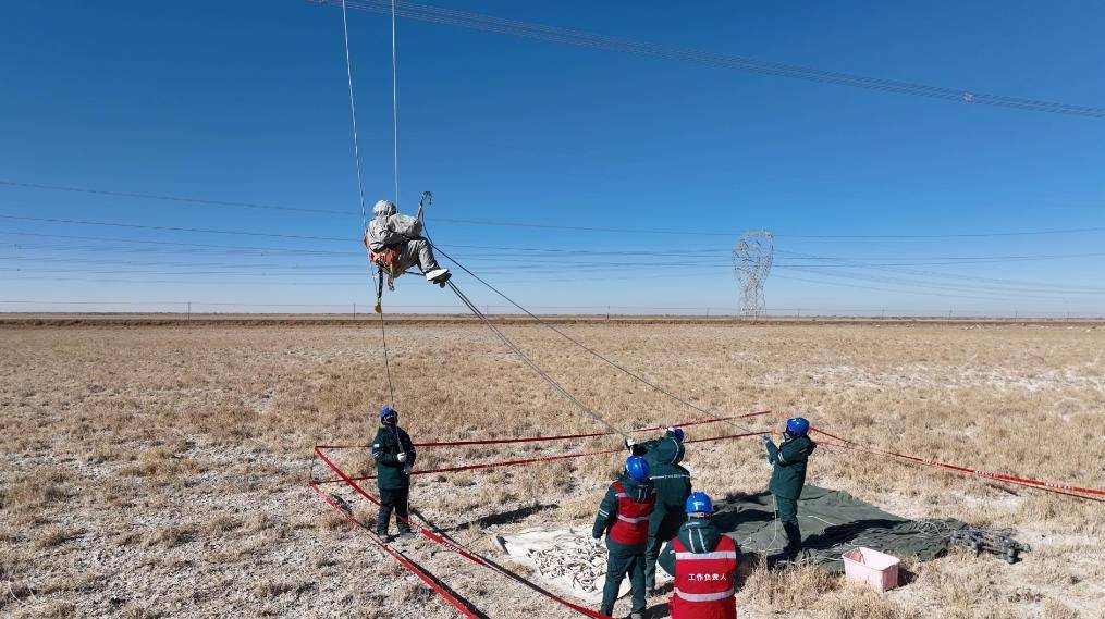 冬日,青海柴达木盆地,海拔2800米,凉气裹带。直通高原戈壁荒凉的750千伏柴鱼Ⅱ线上,一个身影悬停在三十多米的高空。带电功课东谈主员张杨,身着全套屏蔽服,手执电位更始棒,眼神锁定目前滋滋作响、承载着数十万伏特高压的导线,全神灌输。