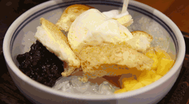 冰镇的椰奶里浸泡着西米、紫米、