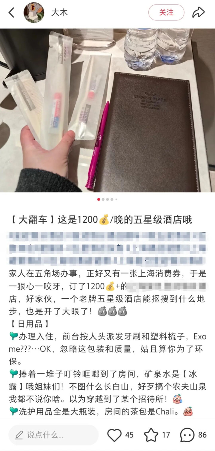 十年前住五星级货仓,矿泉水是依云,拖鞋是厚底绒面的,洗沐用品是欧舒丹,床单支数高到能当传家宝。当今呢?豪华的装修还在,但内部的东西,一件一件地在“左迁”。