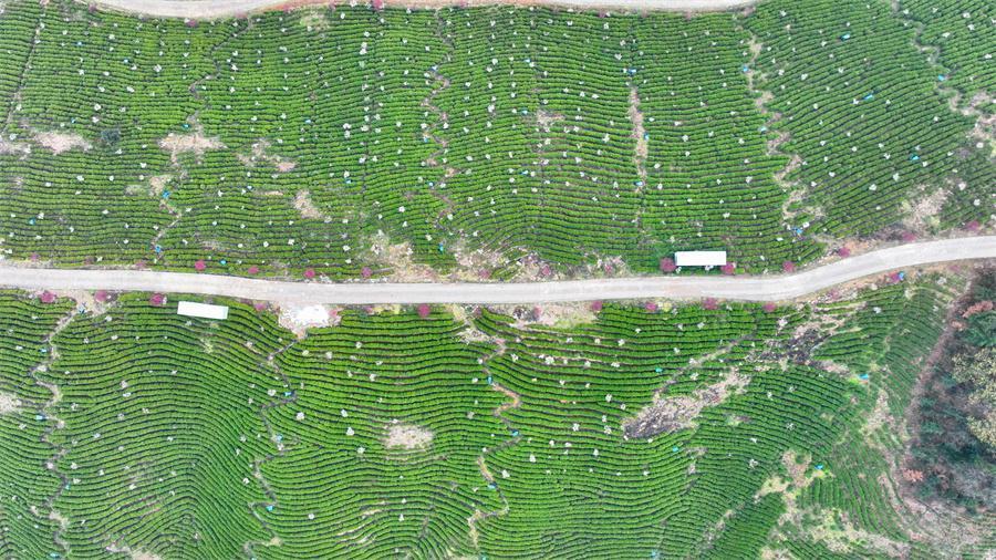 茶园香翠欲滴,梅花竞相洞开。东说念主民网 郭昊摄