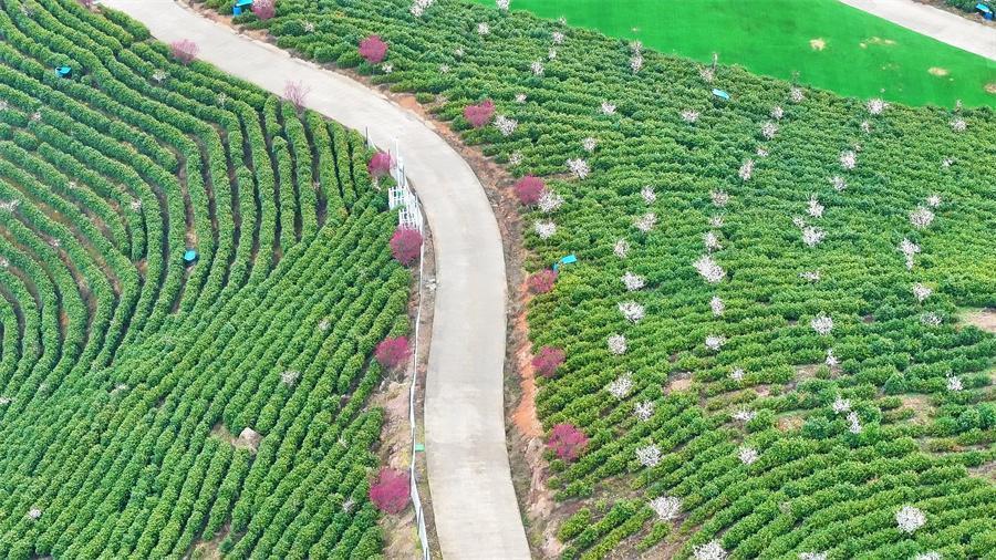 繁昌区孙村镇梅冲村的青梅花参预盛放期。东说念主民网 郭昊摄 梅花点缀茶园间。东说念主民网 郭昊摄