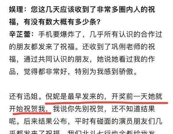 辛芷蕾拿奖那次,倪妮的短信先到了。