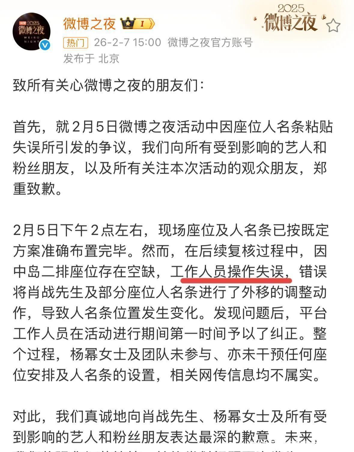 其后平台发了声明,把问题怨尤于经由安排。