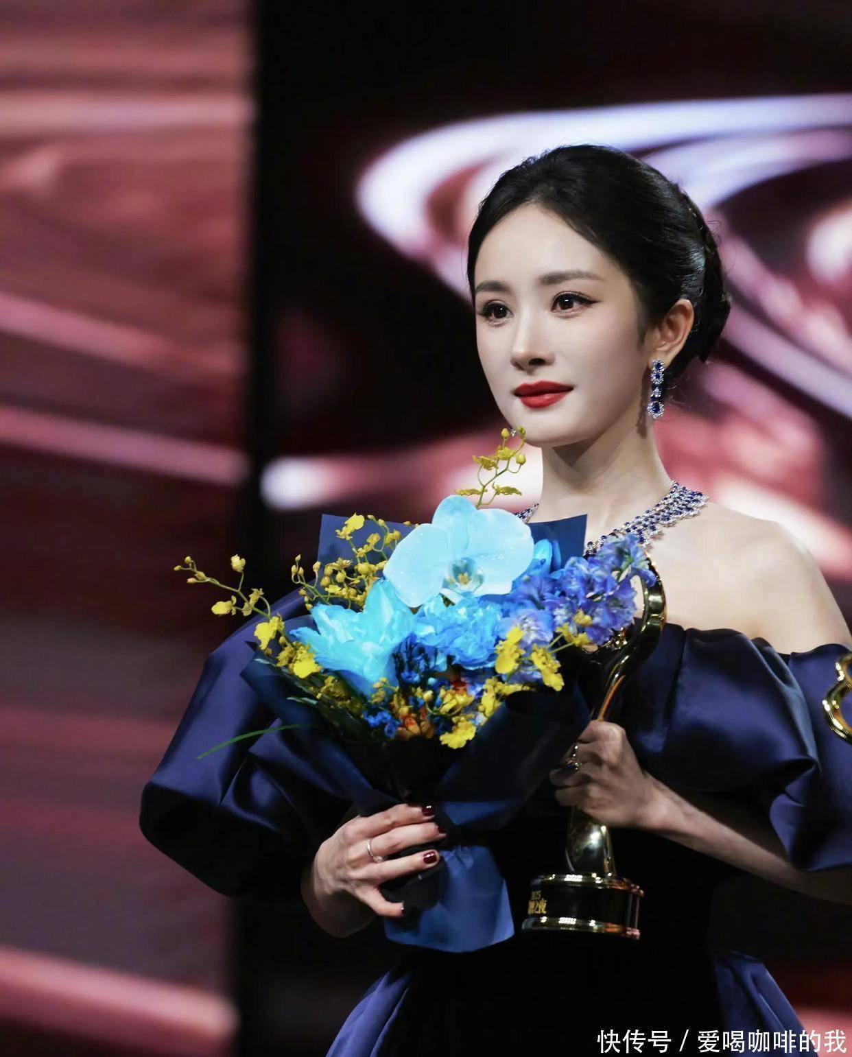 影后的奖杯是硬的,能摆在柜子里的那种。