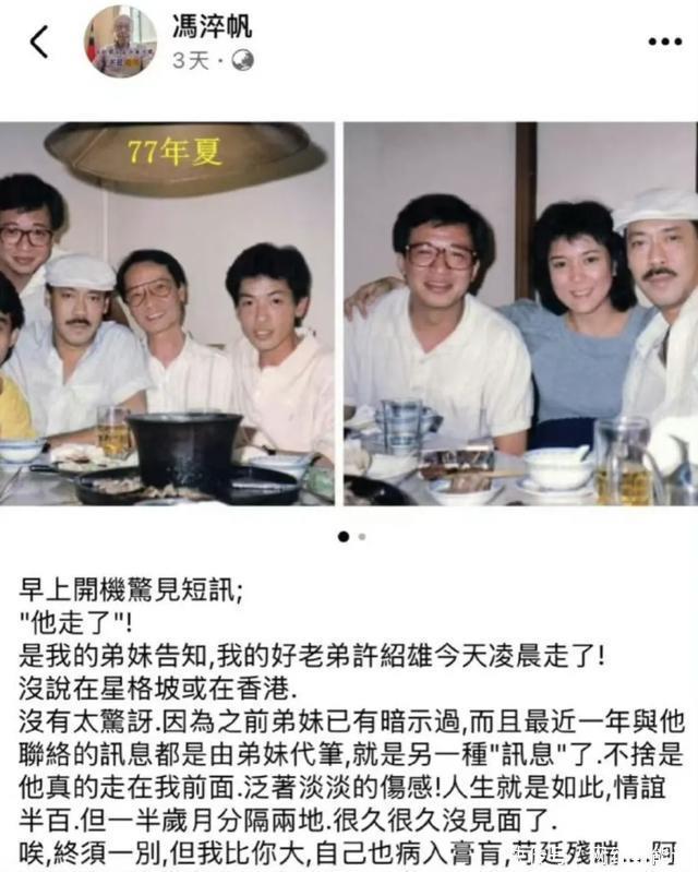 而就在几天前,冯淬帆曾发文吊唁许绍雄,其示意:“偏细致,粗枝大叶”,一句:贤弟何处等,愚兄随自后,没思到一语成谶,就这么遥隔离开了咱们。