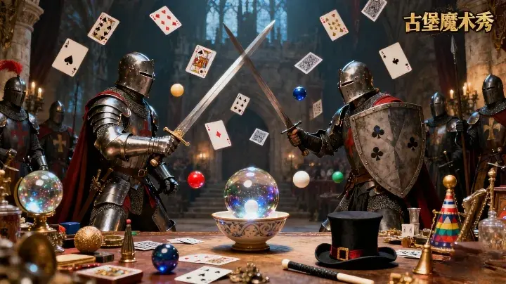 影片同步释出的“古堡魔术秀”正片片断中,“骑士团”深刻蹧跶魔术古堡,在琳琅满商量魔术说念具环绕下伸开高燃对决:项目切牌、卡牌空中悬浮、碗中球幻化、扇子雪花,近100秒高能魔术密集输出。