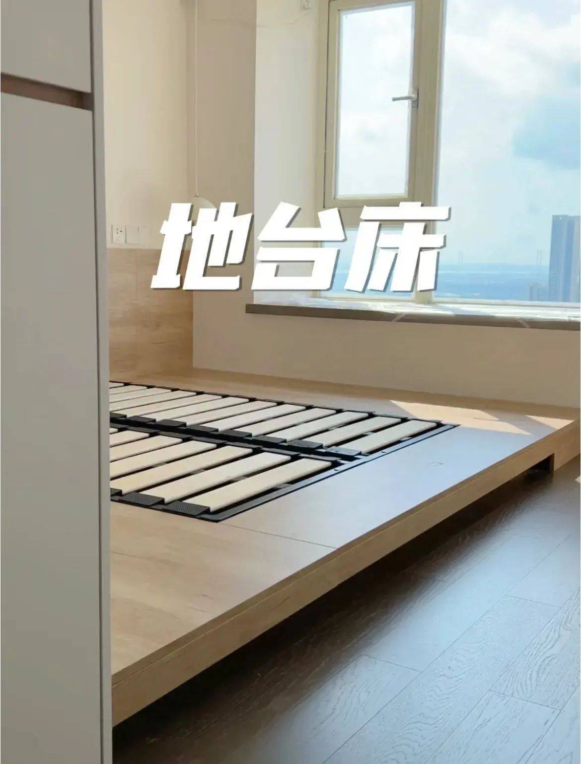 而事实是,空间感莫得变化,比如说衣柜门到床之间的空间不够,柜门该打不开时,加了地台依旧照旧打不开。