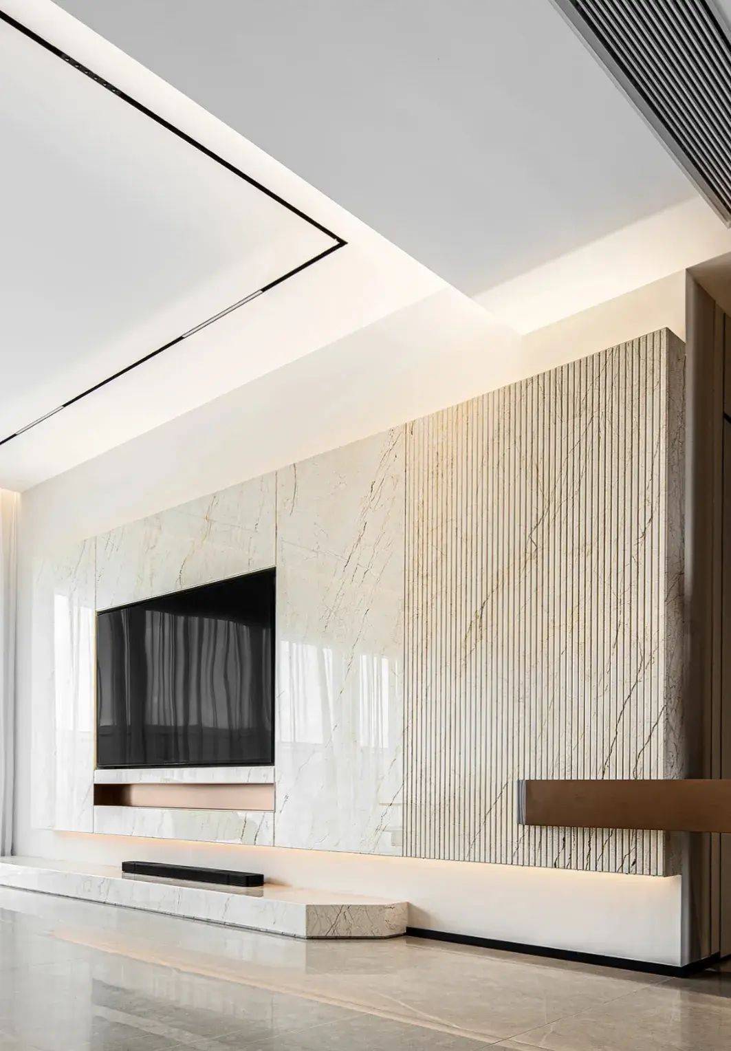 10、石材电视墙有产品博主说,电视墙是一个客厅的中心,一定要彰显品位,然后就作念了多样丽都的石材。