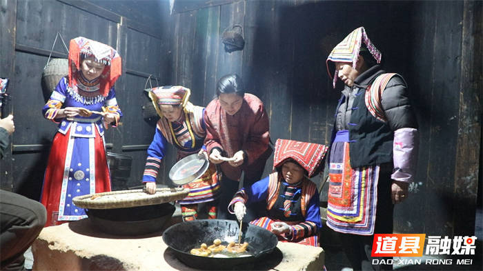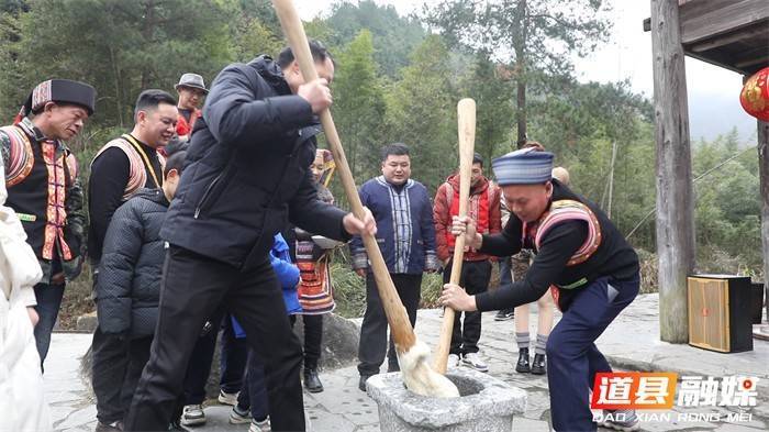 而在大山深处的洪塘营瑶族乡大洞田村,处处实足着浓郁的瑶乡年味。朝晨源流,贴对联、作念艾叶粑粑、打糍粑、打油茶、磨豆腐等传统年俗行径递次开展,干扰超卓。暖和教师的瑶族村民好意思意相邀,将辽阔来客迎进家中,共品结净瑶家风姿。下昼,村里举行新春送虚心行径,为光荣军属和贫困大家奉上新春祝贺与关怀,让这个除夕既有人烟暖意,更显东说念主间暖和。傍晚时刻,乡亲们欢聚在瑶族文化成列馆前的广场,围坐一堂、共赴长桌宴,欢声笑语间满是私有的瑶乡新春氛围。