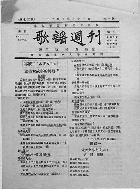 民国时候,北京大学创办的《歌谣周刊》(来源:bjd.com.cn)