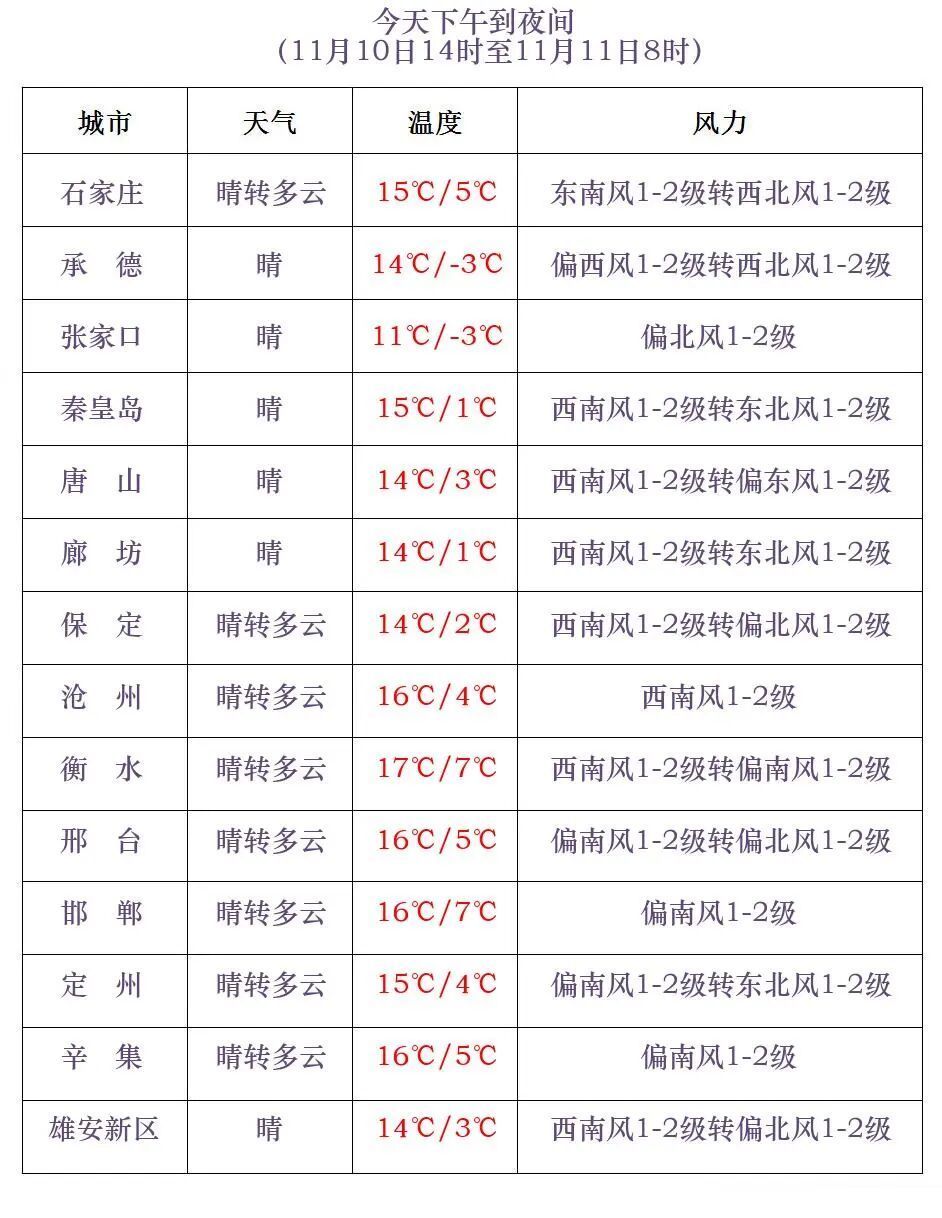 今寰宇午到夜间,保定、廊坊以南地区晴转多云,其他地区晴间多云。