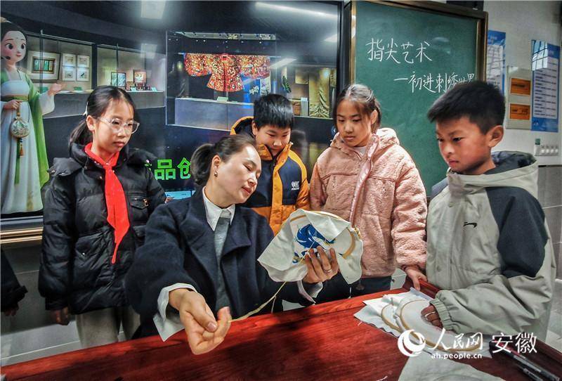 关于安徽省广德市履行小学汲引集团南校区的孩子们而言,绣片上一草一木刻画出的详细图纹,则无声地诉说着新年道贺。